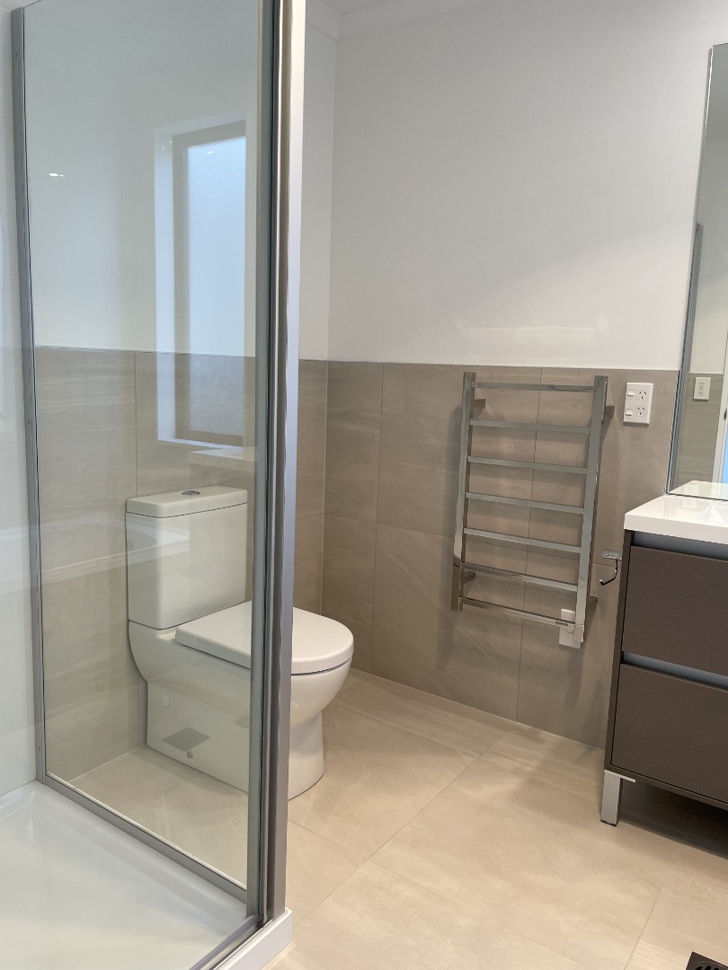 Also on the ground level is a separate toilet, a separate laundry, and a small storage area in the hot water cupboard.