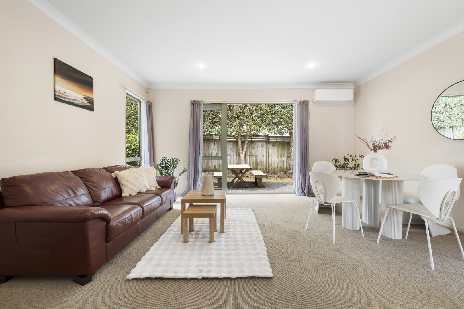Light-filled living area with heat pump