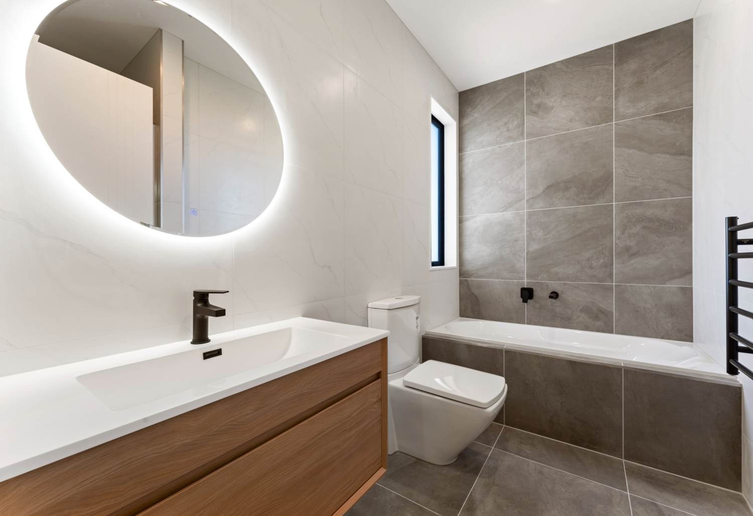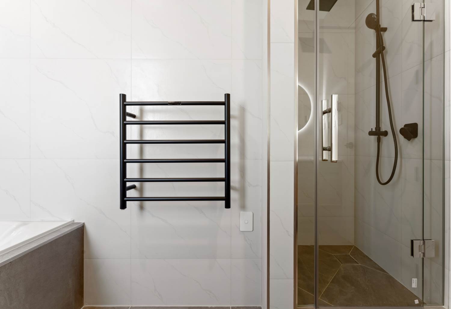 Quality bathtub and shower, plus fully tiled bathrooms with underfloor heating